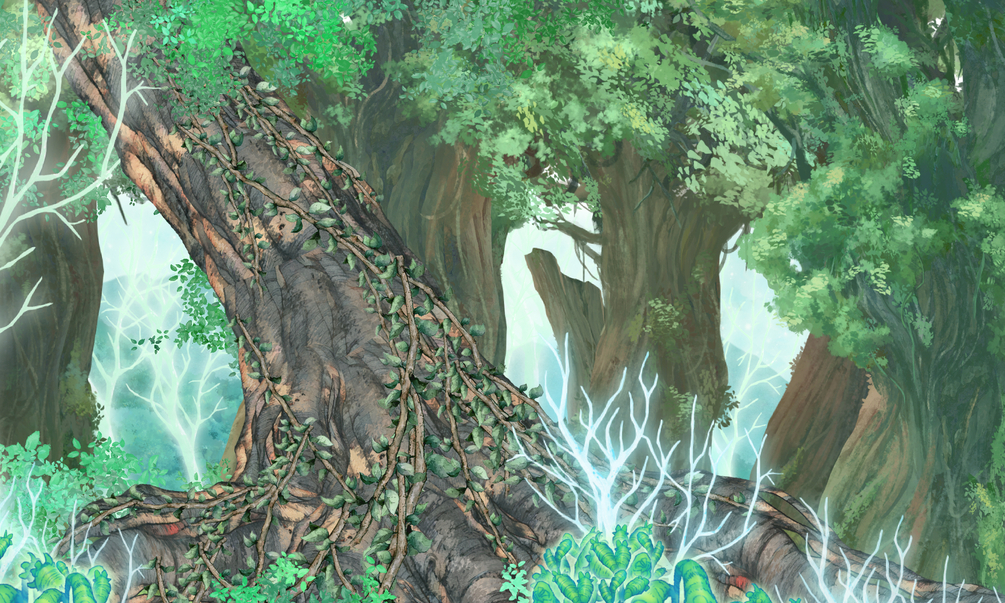 Lightly organize the basic tree body and richly organize the tree roots at the bottom. You can also organize the vines on the tree body according to your taste and smoothly connect the space with a three-dimensional leaf brush.